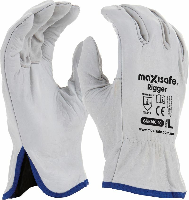 Maxisafe Choose Options Maxisafe Natural Full Grain Rigger Gloves (Pair) Now: $5.50 MSRP: Was: Genuine High Quality Cowgrain Leather Wing thumb for stitch free palm Double Stitched for strength E…
