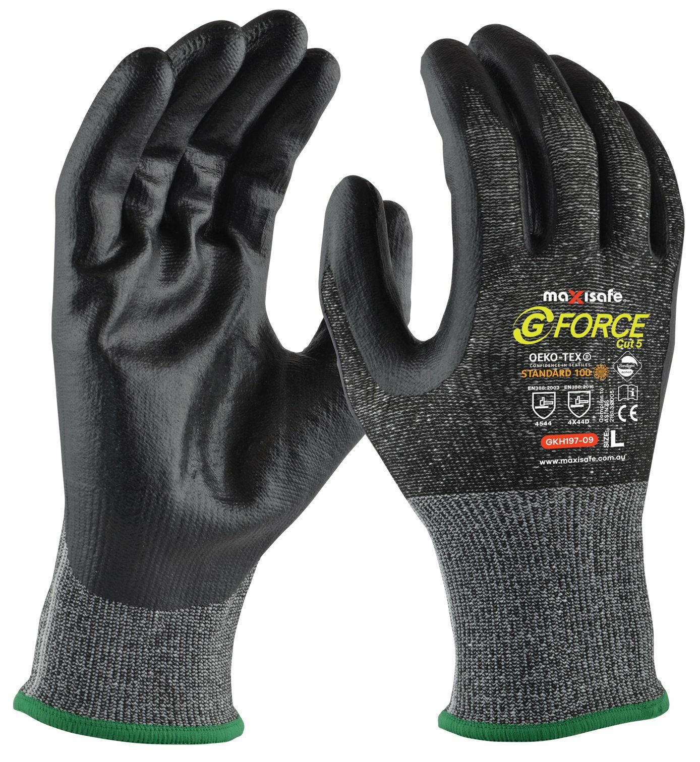 Maxisafe Choose Options Maxisafe G-Force Cut 5 NBR Coated Gloves (Pair) Now: $10.45 MSRP: Was: • Black 13 Gauge Polyethylene super cut resistant yarn• EN ISO cut level C• New micro…